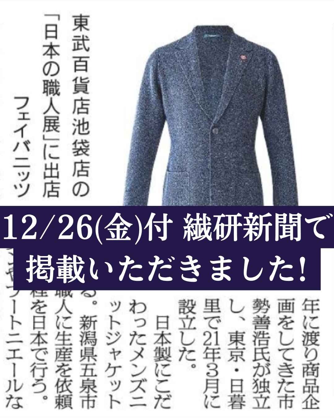 ファッション業界誌 繊研新聞の12月26日(金)紙面で「フェイバニッツ」を掲載していただきました。