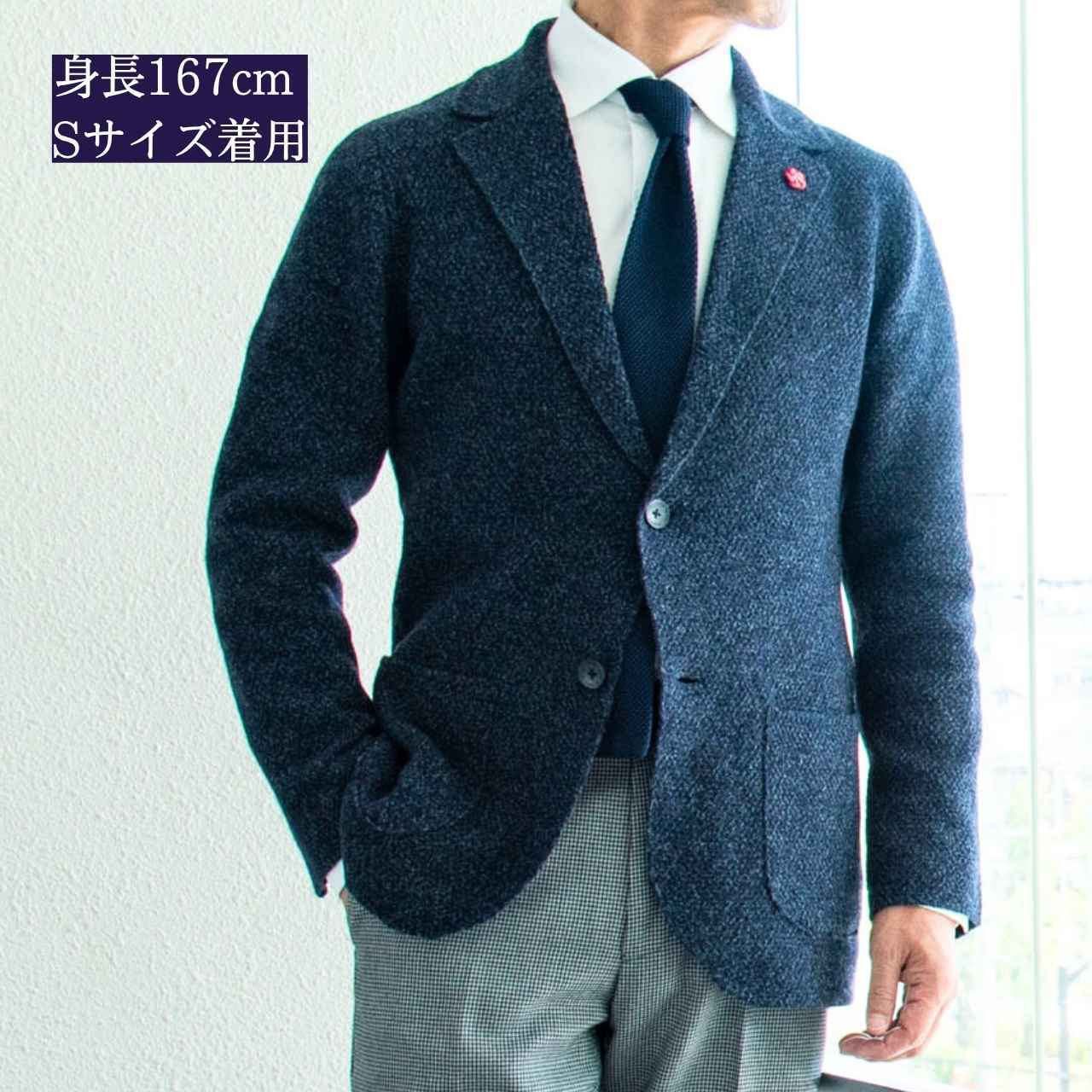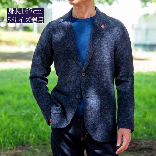 【4色ミックス ラムズウール100%】ラムズウールミックスカラーニットジャケット/ネイビーグラデーション/日本製
