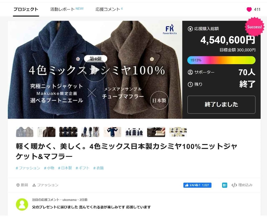 おかげさまで約450万円の応援購入をいただきました。