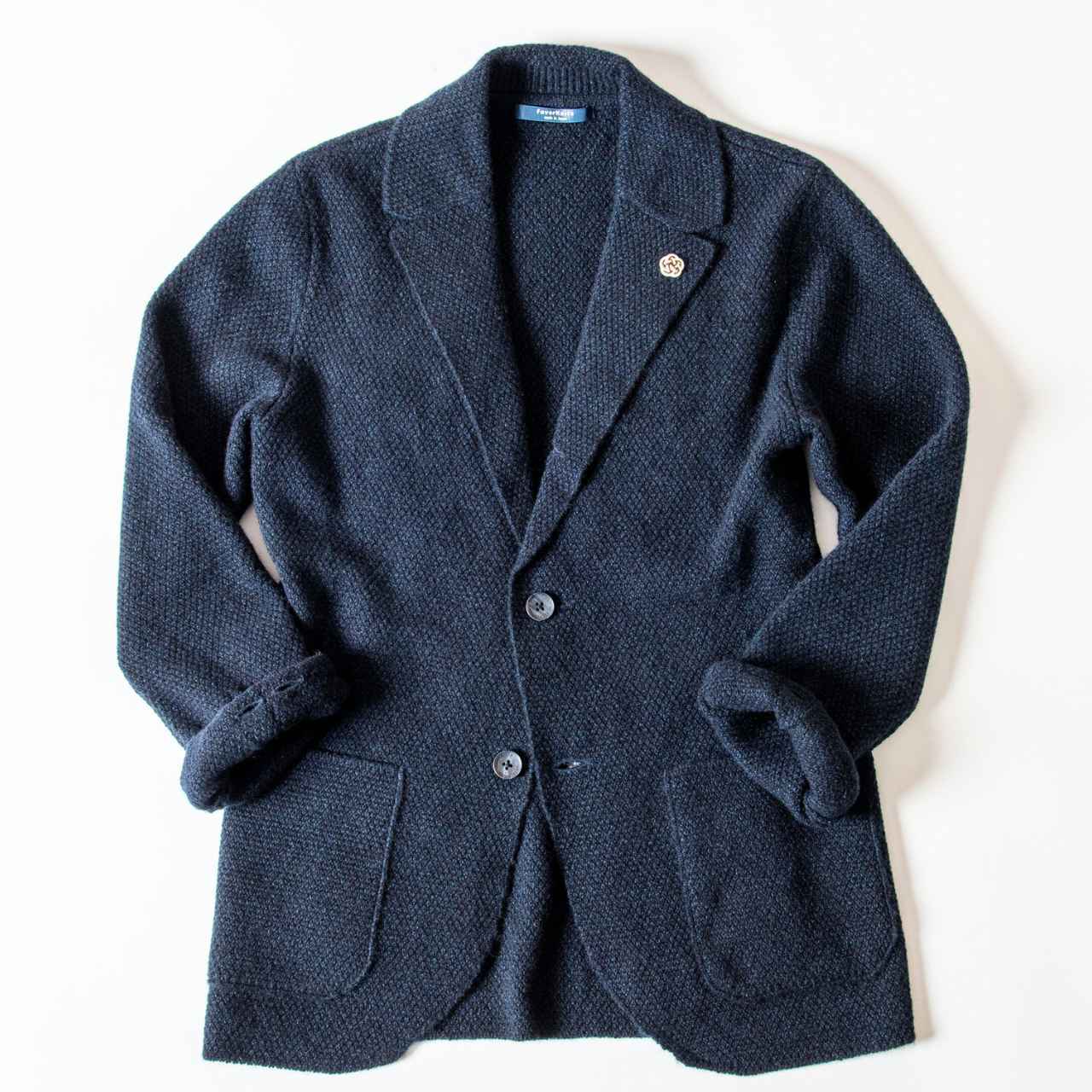 フェイバニッツのニットジャケットは、芯地も裏地も使わない完全一枚仕立て。